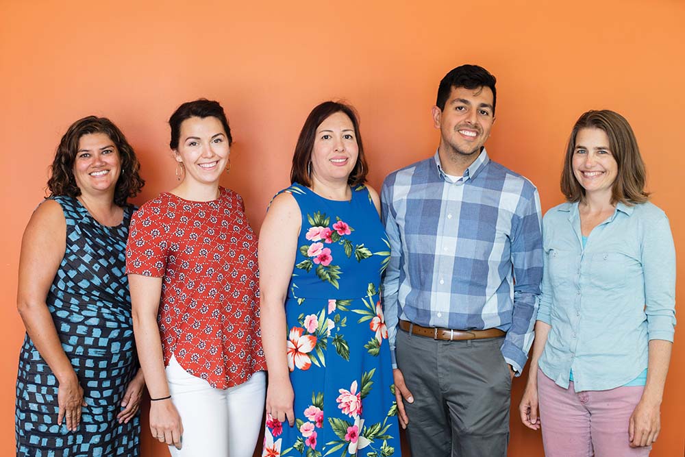 Members of the ALMA team. Left to right: India Ornelas, Daron Ryan, Gigi Perez, Francisco Rios Casas, Serena Maurer. Not pictured: Gino Aisenberg, Gary Chan, Cynthia Price, Deepa Rao and Anh Tran.